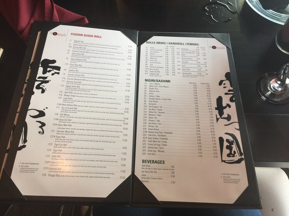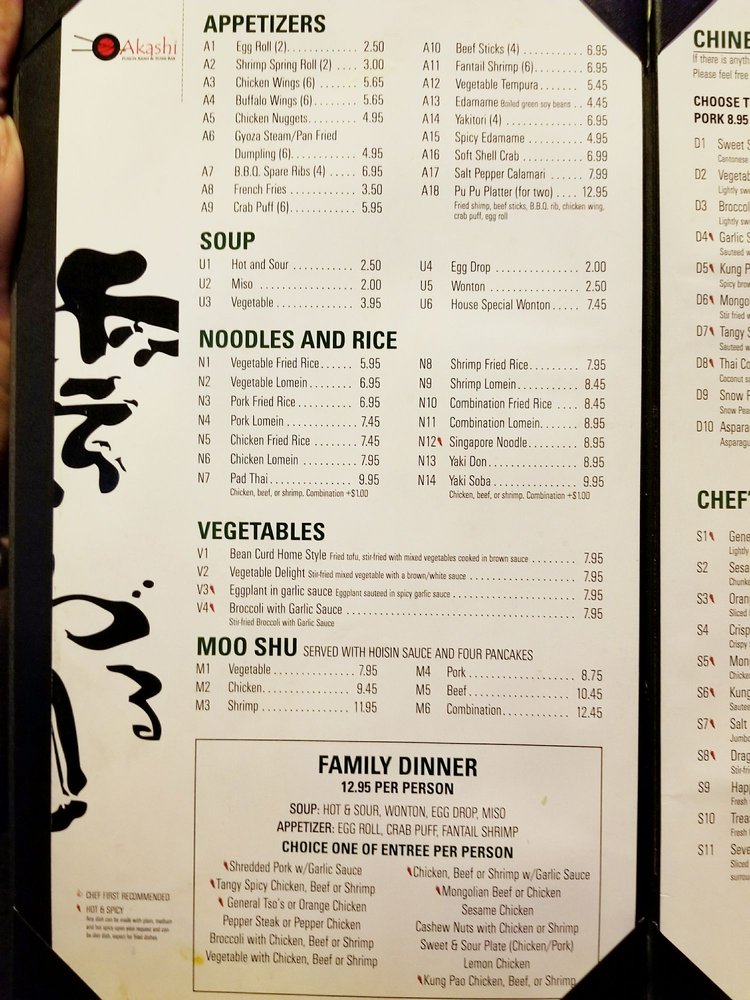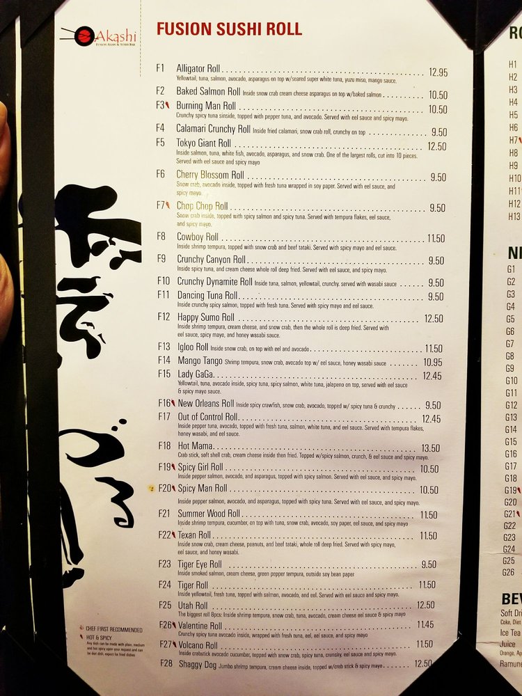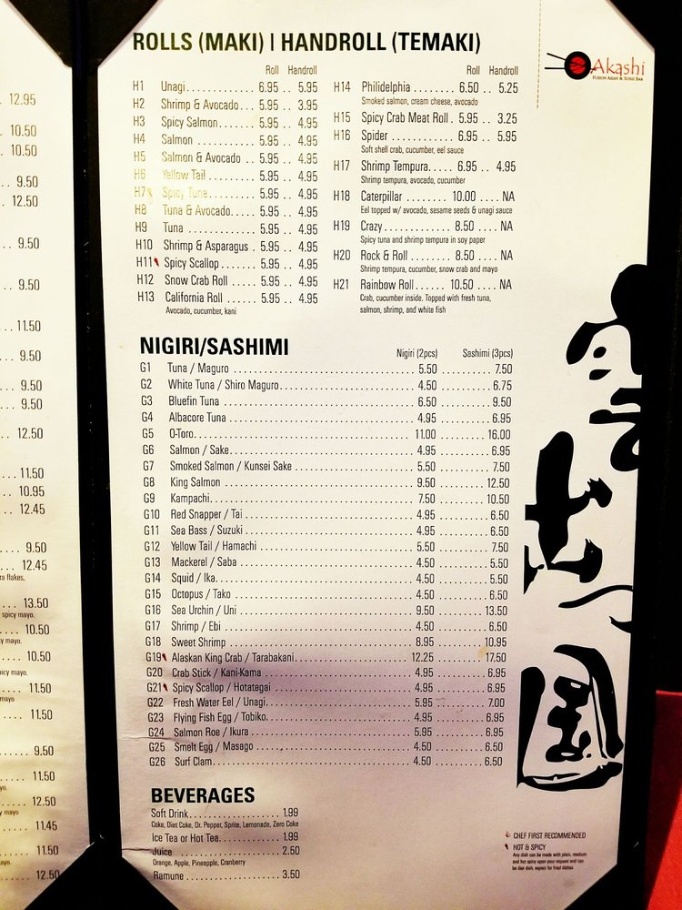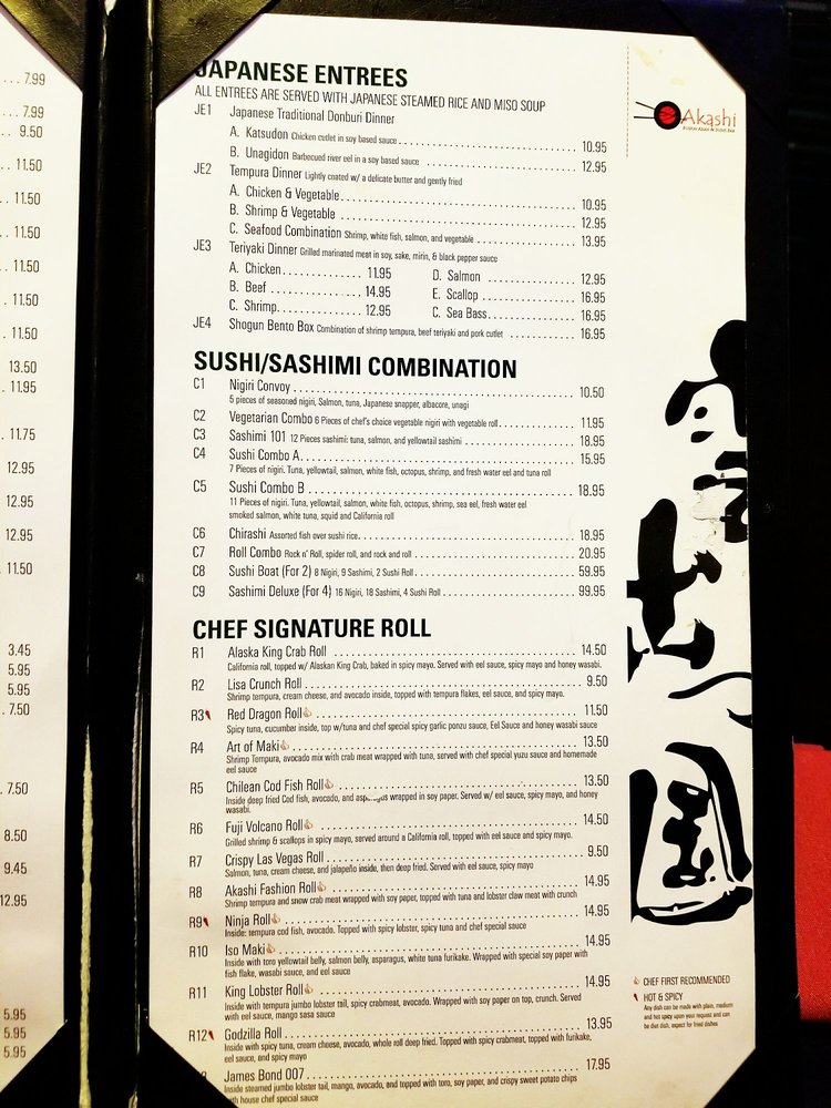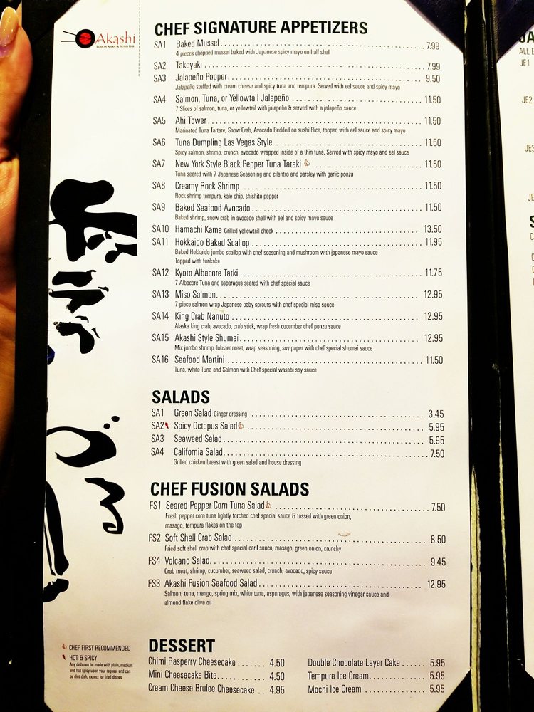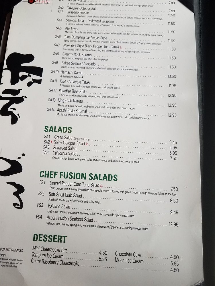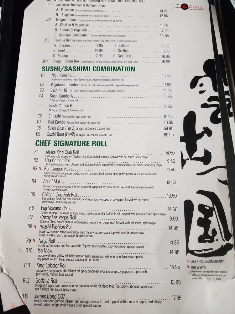 Akashi Fusion Asian & Sushi Bar Menu